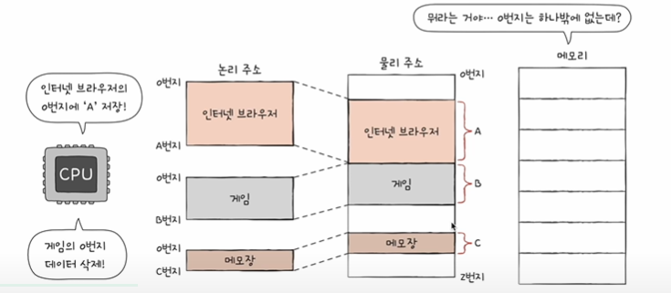 그러므로 0번지에 여러 프로그램이 주소를 할당받아 겹칠 수 있다.