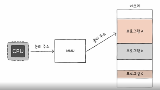 CPU에서 바라본 주소는 논리 주소이다. 따라서 CPU에서 논리 주소에 속한 프로그램들에 대한 작업을 수행하면 메모리 입장에서는 프로그램들이 물리 주소에 할당되어있는 상태이기 때문에 작업을 수행할 수 없다.