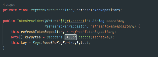 이 말인 즉슨, 토큰값을 분해할 때 Base64 형식으로 decode 된 secret key 를 사용하여 토큰을 분해하게 되는데,