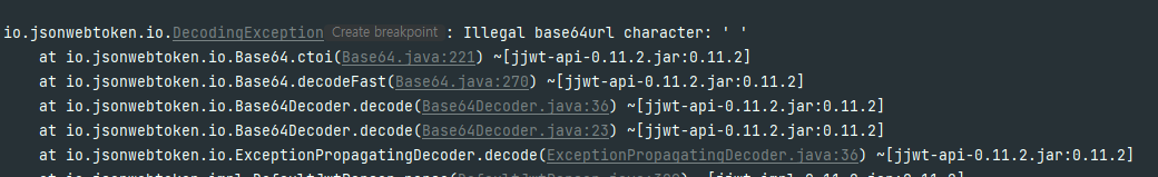 동작을 수행해보니 Illegal base64url character: ' ' 에러가 발생했다.
