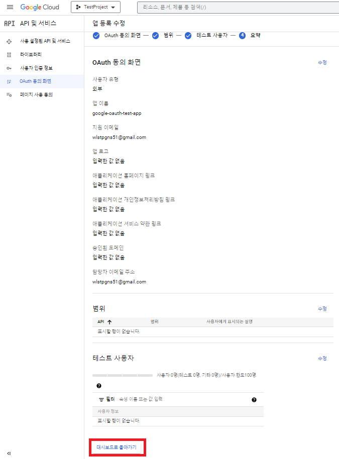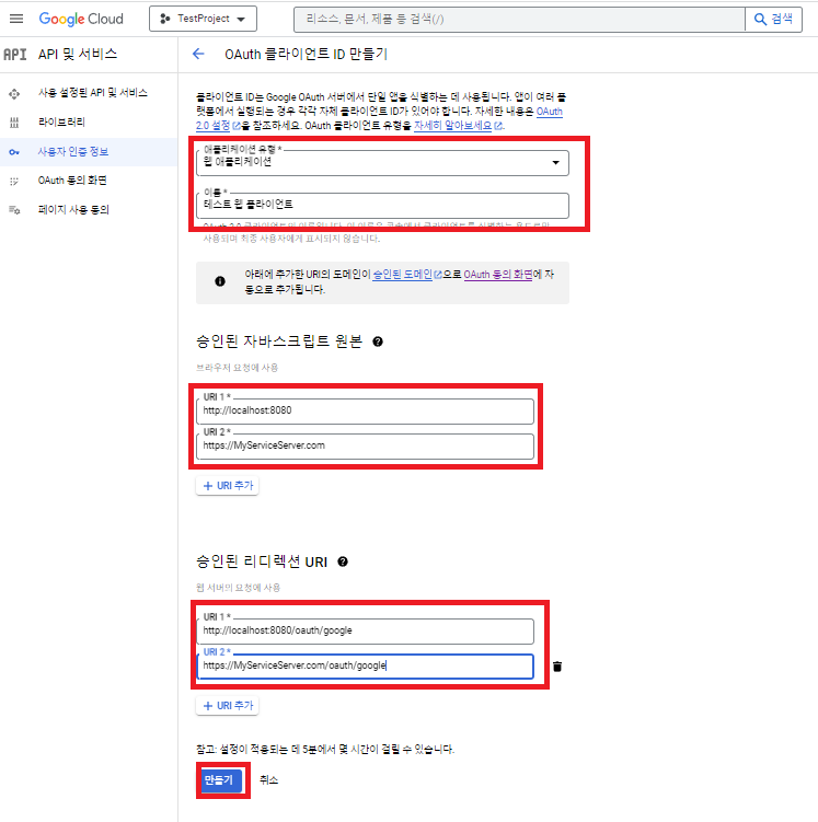 이렇게 해서 구글 로그인을 시도할 클라이언트 설정을 완료하였습니다.