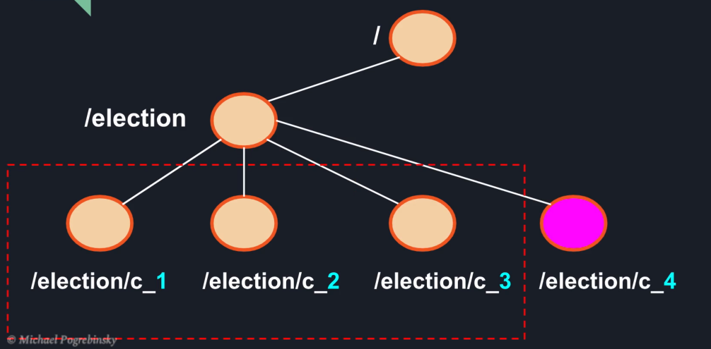 노드 순서는 주키퍼가 우리에게 제공하기 때문에 각 노드는 election 부모 노드의 자식 노드를 자신이 Z노드를 생성하기 전에 생성된 모든 Z노드를 볼 수 있습니다.
