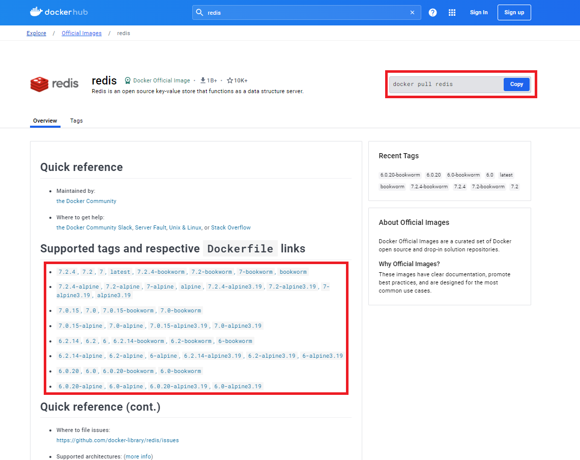 (2) Docker Hub 에서 Redis 관련 문서 확인