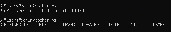 또한, docker ps 명령어를 통해 현재 실행중인 container가 존재하는지 확인해줍니다.